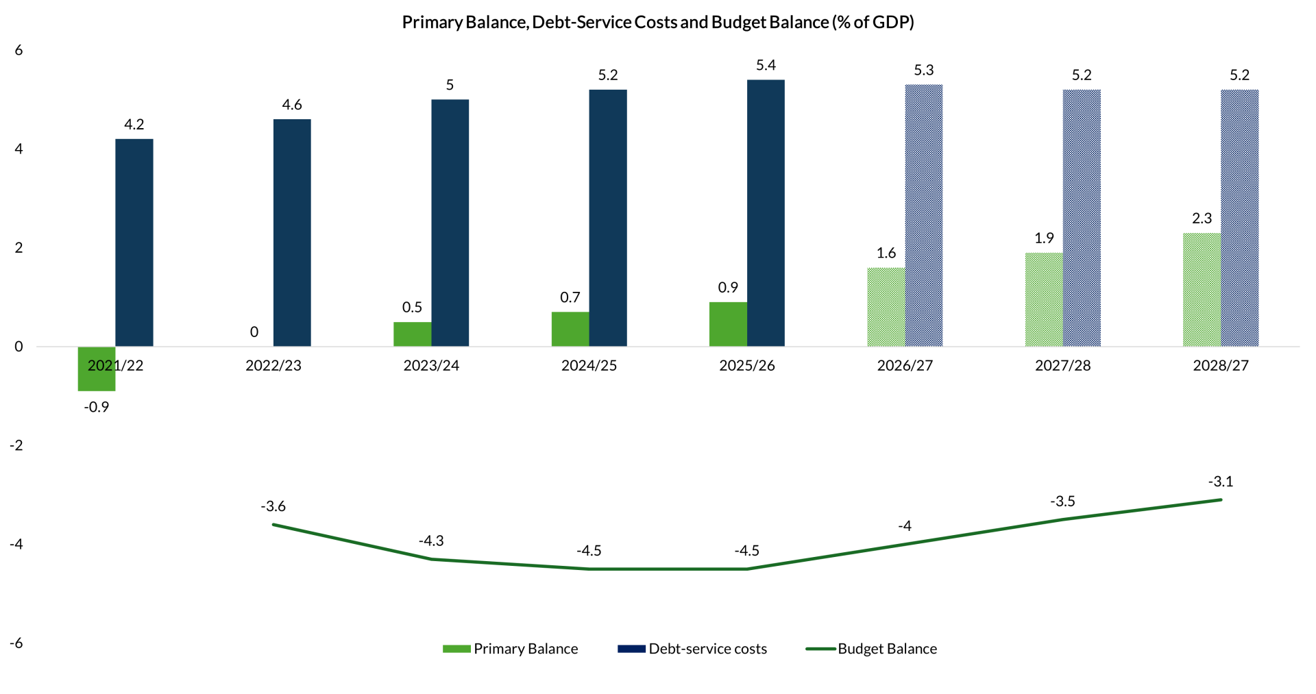 The budget recorded a primary surplus of 0.9 per cent of GDP for 2025/26, and it is projected to expand to 2.3 per cent by 2028/29. That trajectory improves the balance before interest costs and creates the conditions for debt stabilisation. The credibility of the framework rests on maintaining expenditure discipline and continued structural reform over the medium term.